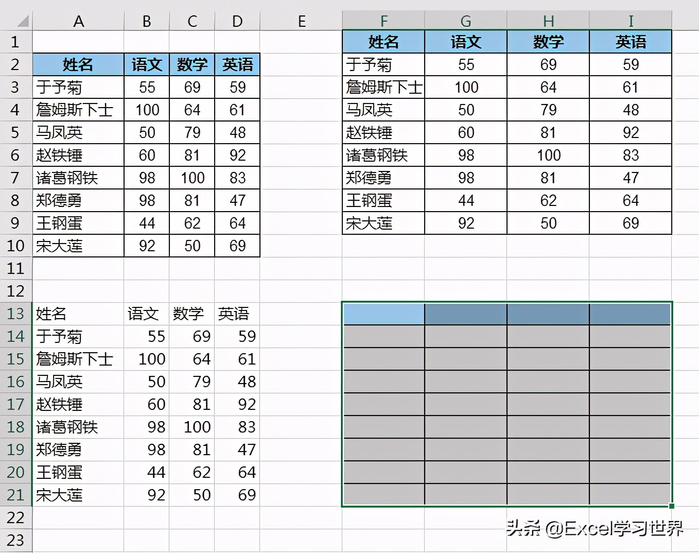下图 1 是一个普通的数据表,现在要根据需要,将它进行各种复制、移动操作。