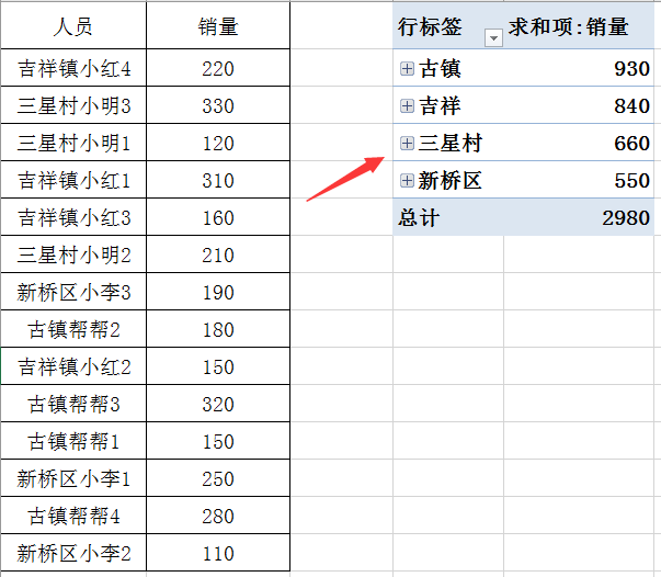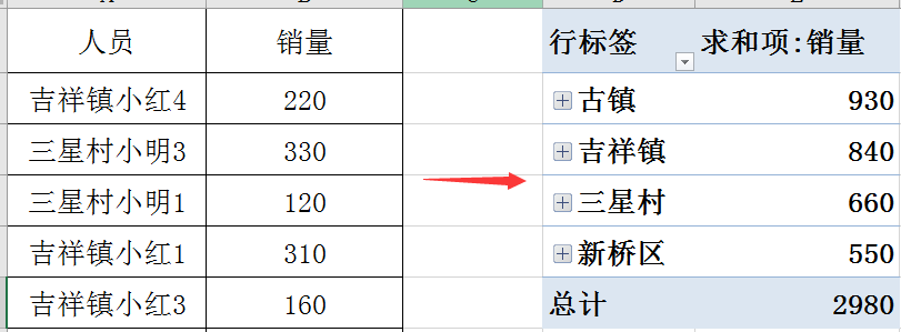 大家请看范例图片,按照地图分组,在数据源不整理的情况下,也可以利用透视表汇总结果。