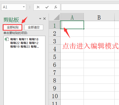 点击需要多列转换的首个单元格,双击进入单元格编辑模式,点击全部粘贴。