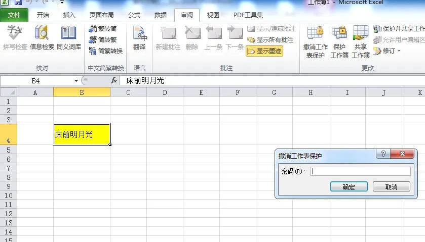 若要修改咋办呢,我们按以下方法操作即可,单击菜单栏审阅命令,单击撤销工作表保护,见图8
