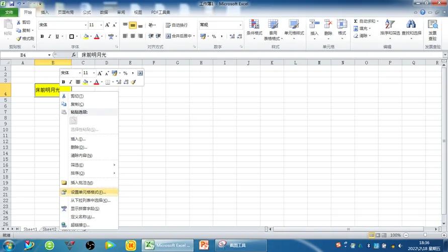 在下图1中,我们要给B4单元格的内容进行保护,不允许他人修改该单元格内容,选中要保护的单元格,这里我们选B4单元格,右键单击,弹出单元格右键菜单栏,选择设置单元格格式命令。