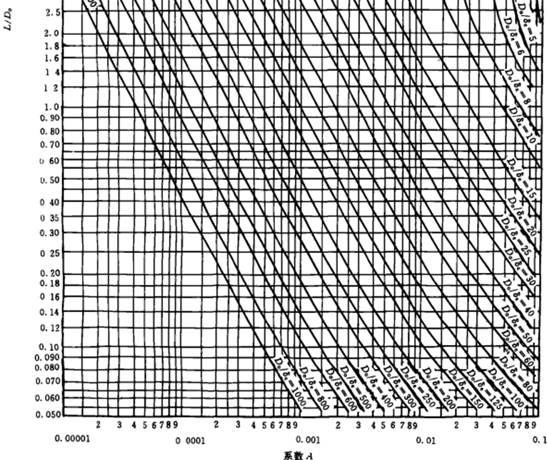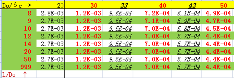 7. 以上过程编制成Excel计算表后,只要输入(L/D0)和(Do/δe),即可得出A值。