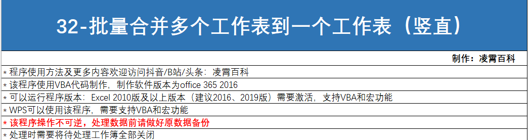 打开【32-批量合并多个工作表到一个工作表(竖直)】程序