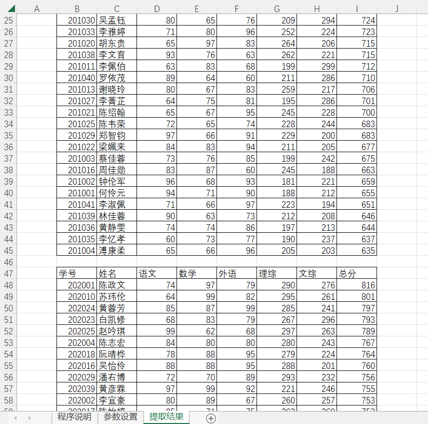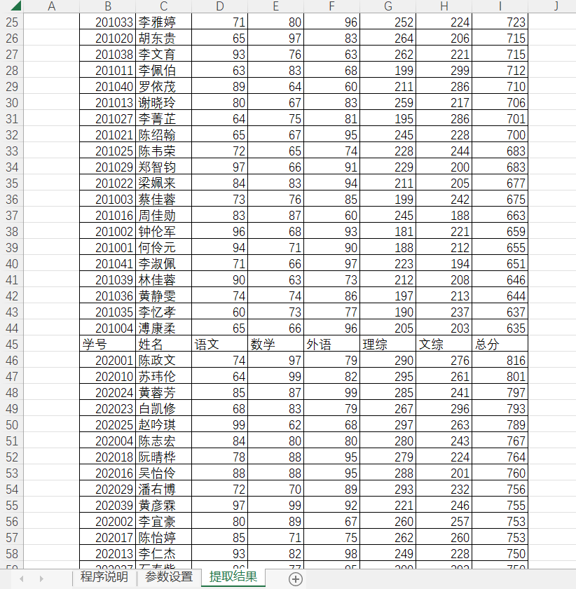 查看处理结果,以上就是三种不同的提取类型提取的结果,显示到【提取结果】工作表中。