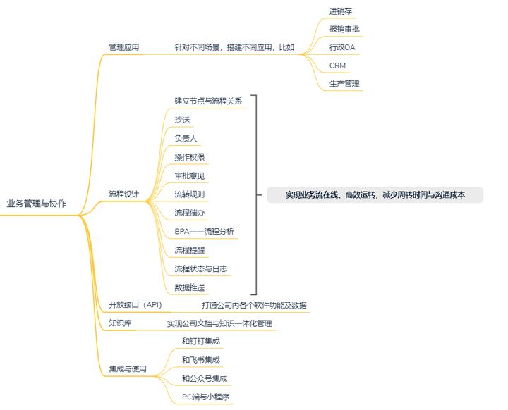 在此基础上,apaas功能又进一步延申,从数据层面走向管理层面,具有更多业务属性——助力业务管理与协作: