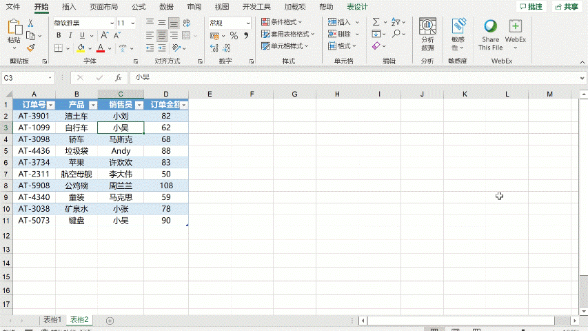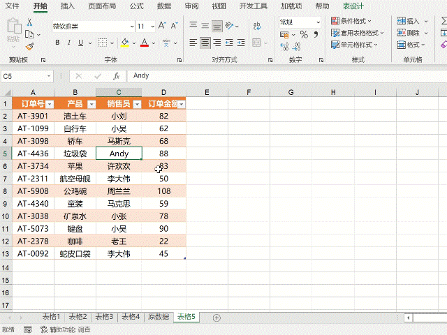 【表设计】→【表格样式】,选择一个喜欢的风格,一键切换。