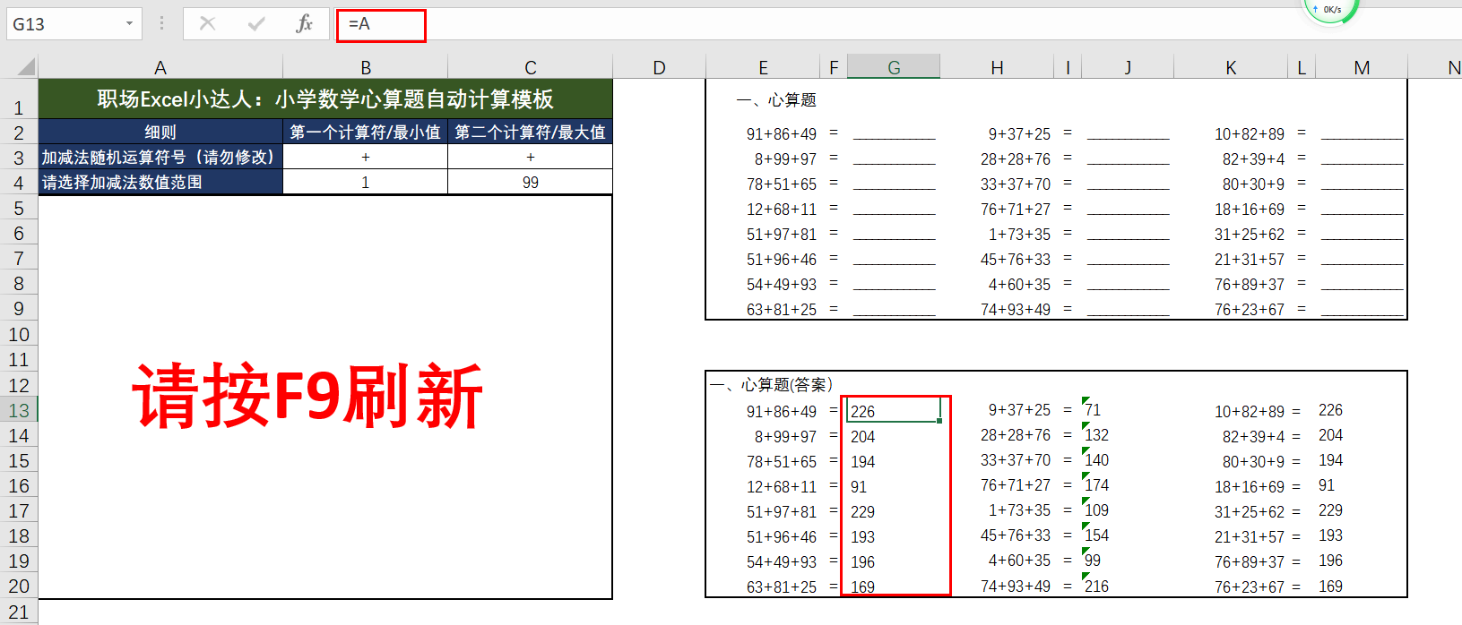 俗话说:勤能补拙。小学数学算术题大全,孩子做完不愁算术,今天小编就教大家用Excel无限次随机生成计算题,并附带每次生成的计算题的答案哦。