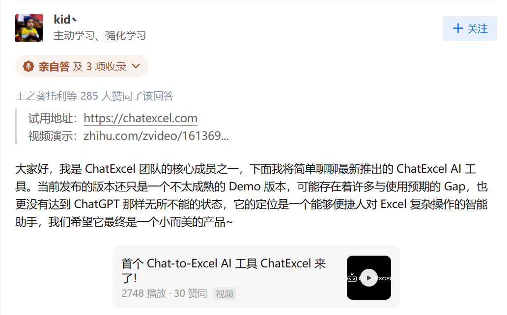 根据ChatExcel团队成员在知乎上的回答来看,这个工具之后想发展成一个全能处理文档的工具,用于电子文档、电子表格和PPT、还有P图等方向。