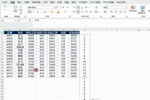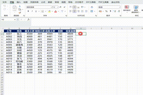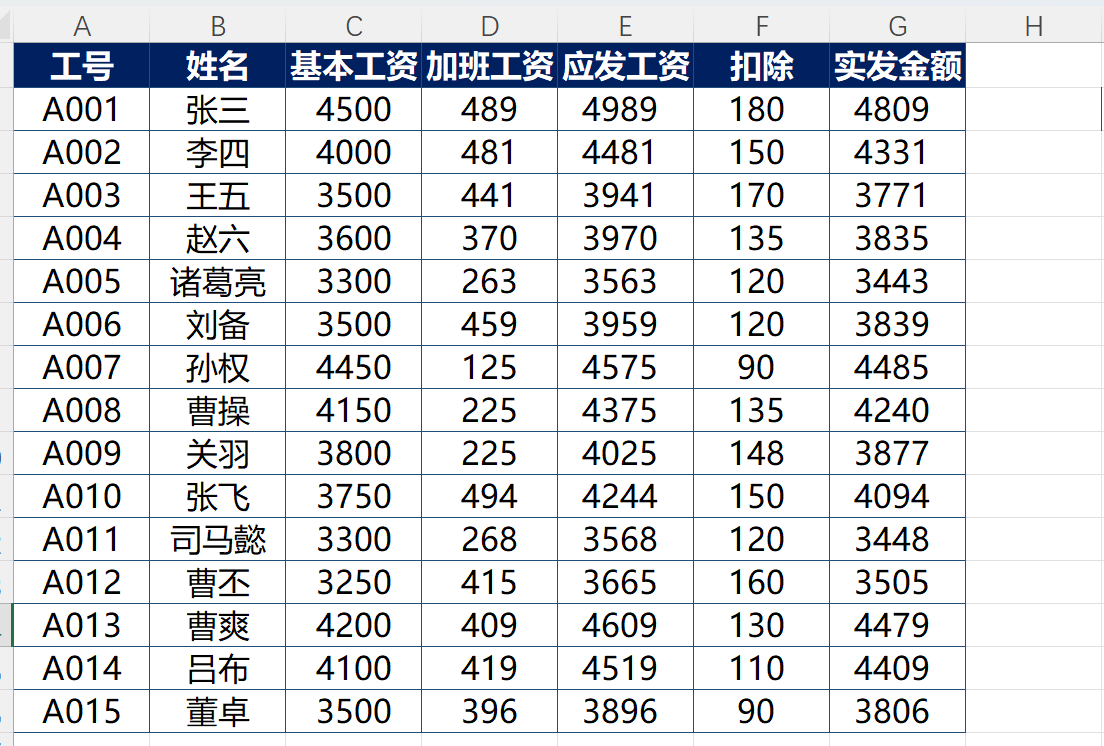 如下图是一张工资表,需要设置成工资条,操作步骤如下: