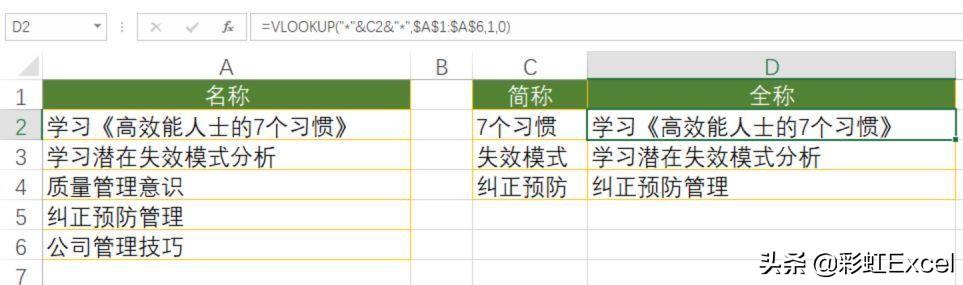 我们在查找需要的内容时,偶尔也会遇到如下的情况,查找的值不是全称,是简称,那如何通过简称去查询其对应的全称内容呢?