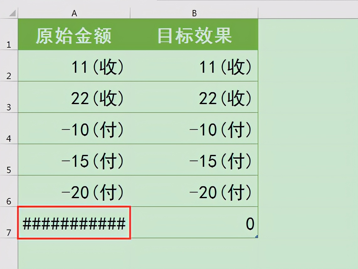 如果希望将上述案例的0值隐藏不显示,可以将格式代码设置为:[>0]0("收");[<0]-0("付");