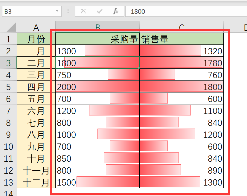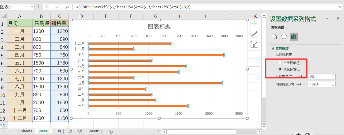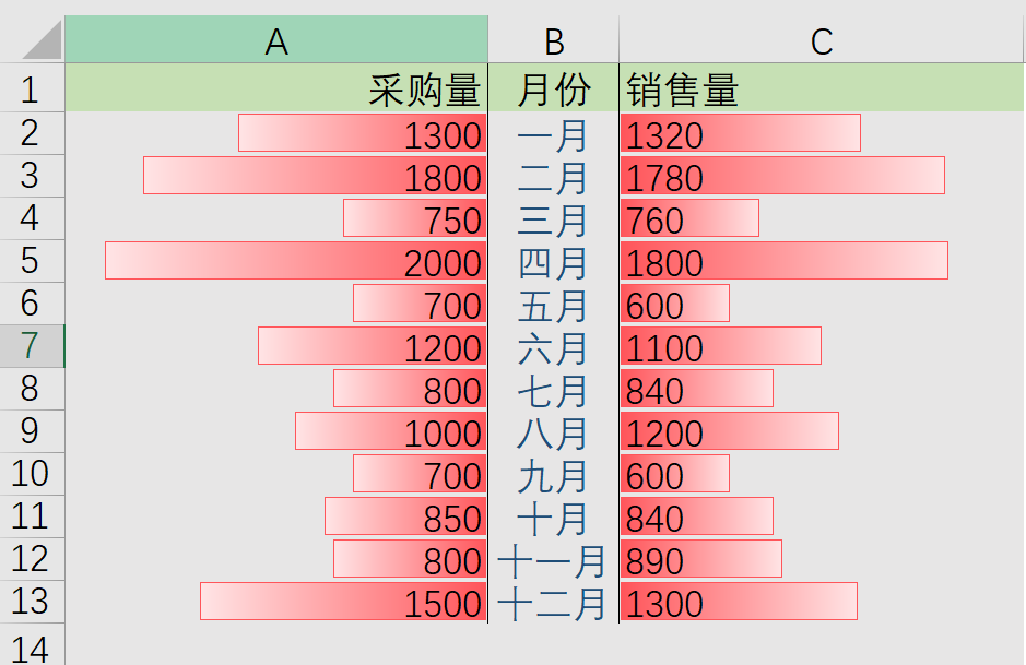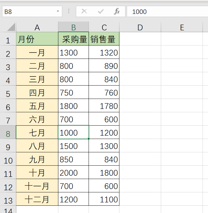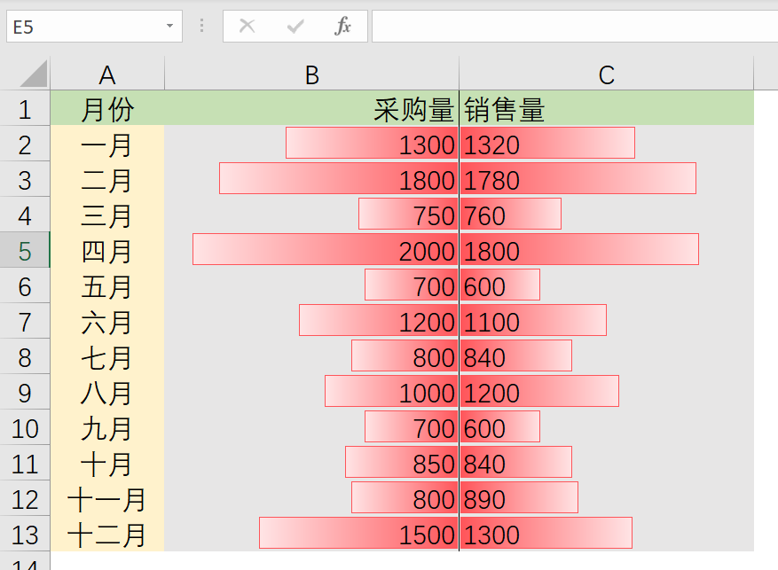同样地,可以将名称列也就是月份这一列移动到两列数据的中间。
