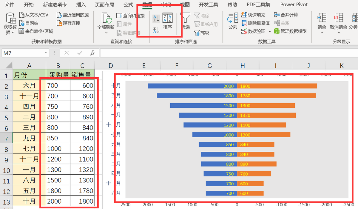 同样可以对表格内数据进行升序或降序排列,让旋风图看起来更炫些!