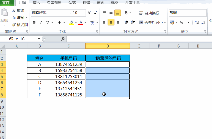 技巧6:快速隐藏手机号码的中间4位
