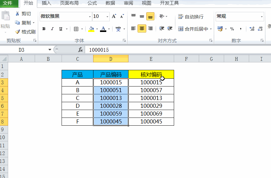 技巧5:快速核对两列数据中的差异数据