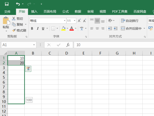 输入等差数列很简单,只需要先在2个单元格输入内容,比如A1、A2分别输入10、20,选中A1、A2,单击选中范围的右下角小色块,向下拖动就可以输入等差数列。Excel能够自动将两个数之间的差值作为步长,连续填充。