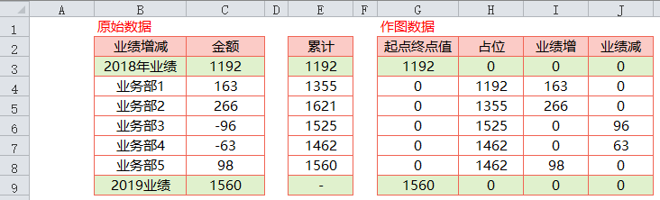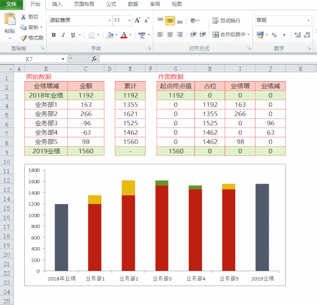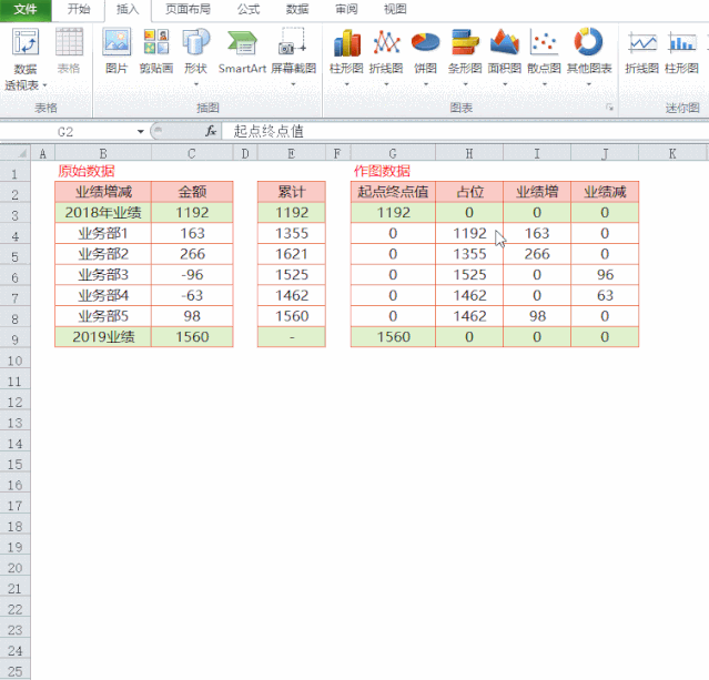 这种瀑布图的做法需要有一定的技巧,下面来看下具体的制作步骤。