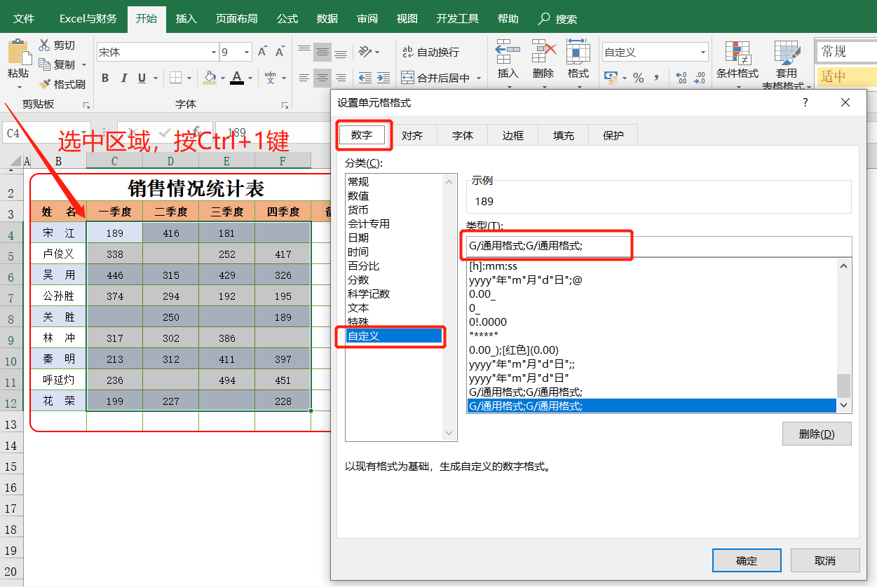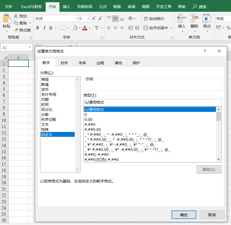 有时需要显示的格式,常用类型里没有,这就需要通过自定义来设置。
