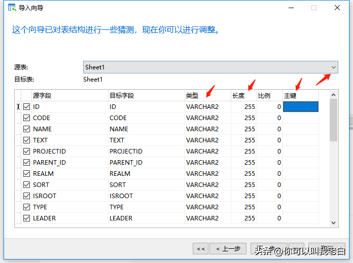 这里可以选择对应的表进行设置,记得给ID加上主键,类型修改。因为这是系统自己根据数据和名称判断的,不准确。这里一定要改,尤其是orcale的表,否则有数据的话有些类型不让修改除非把数据清除。