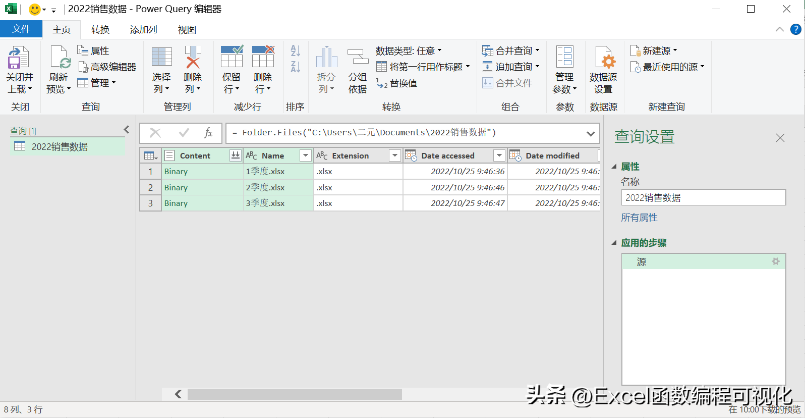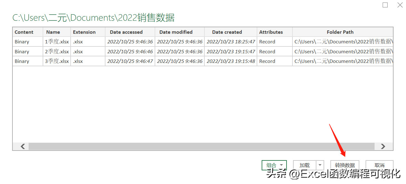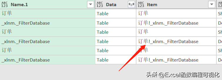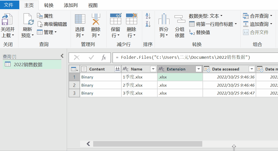 内容列Content字段“binary”表示二进制的意思,二进制数据无法直接获取,我们需要利用M语言提取工作簿中的数据。