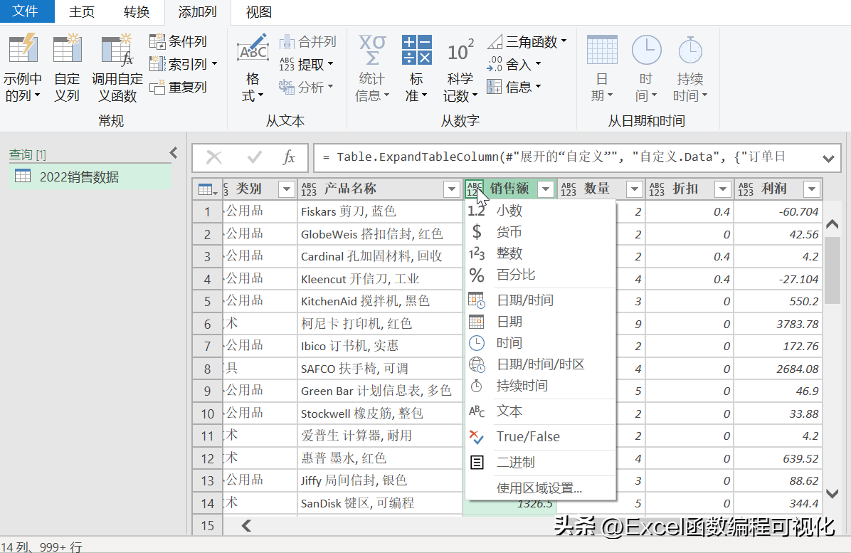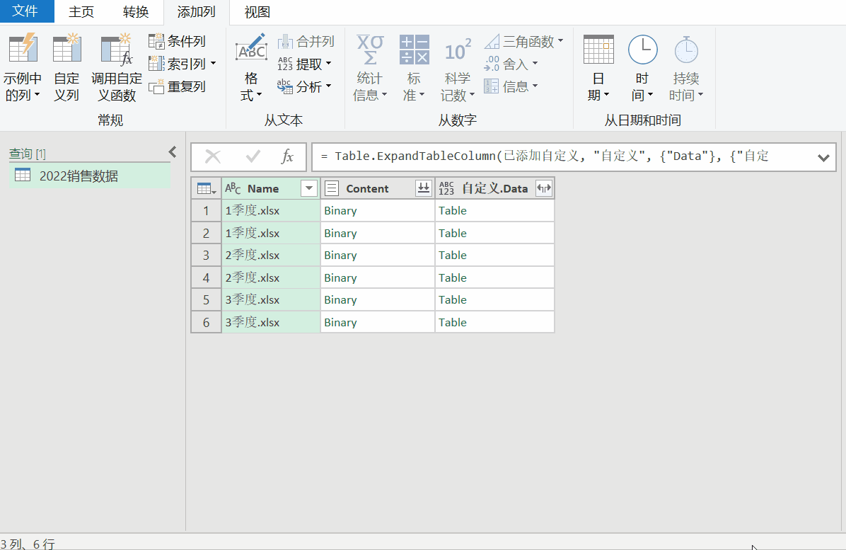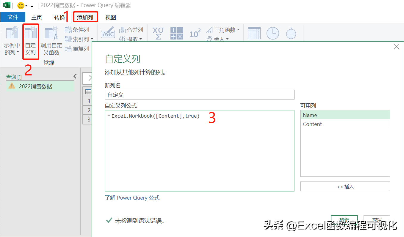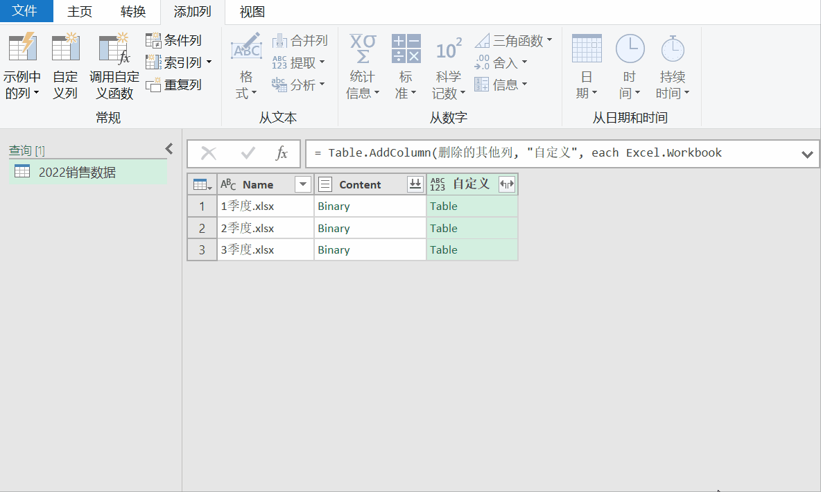 在“查询编辑器”中点击“添加列”—“添加自定义列”,输入以下公式: