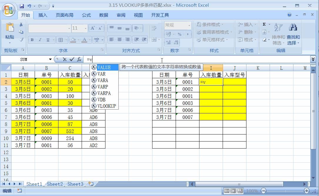 第一参数用&符号就是将日期和单号连接组成一个统一的条件值,if函数的作用在于重组一个新的数据查询区域。