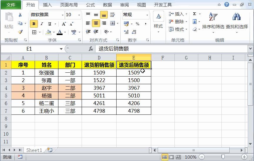 答:选中两列数据后,按Ctrl可以快速定位到两列数据不同的单元格内容。我们可以通过填充颜色来看出区别。如下所示: