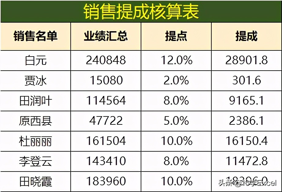 在日常统计工作中,使用Excel函数对销售提成金额进行核算是最常用的案例之一。