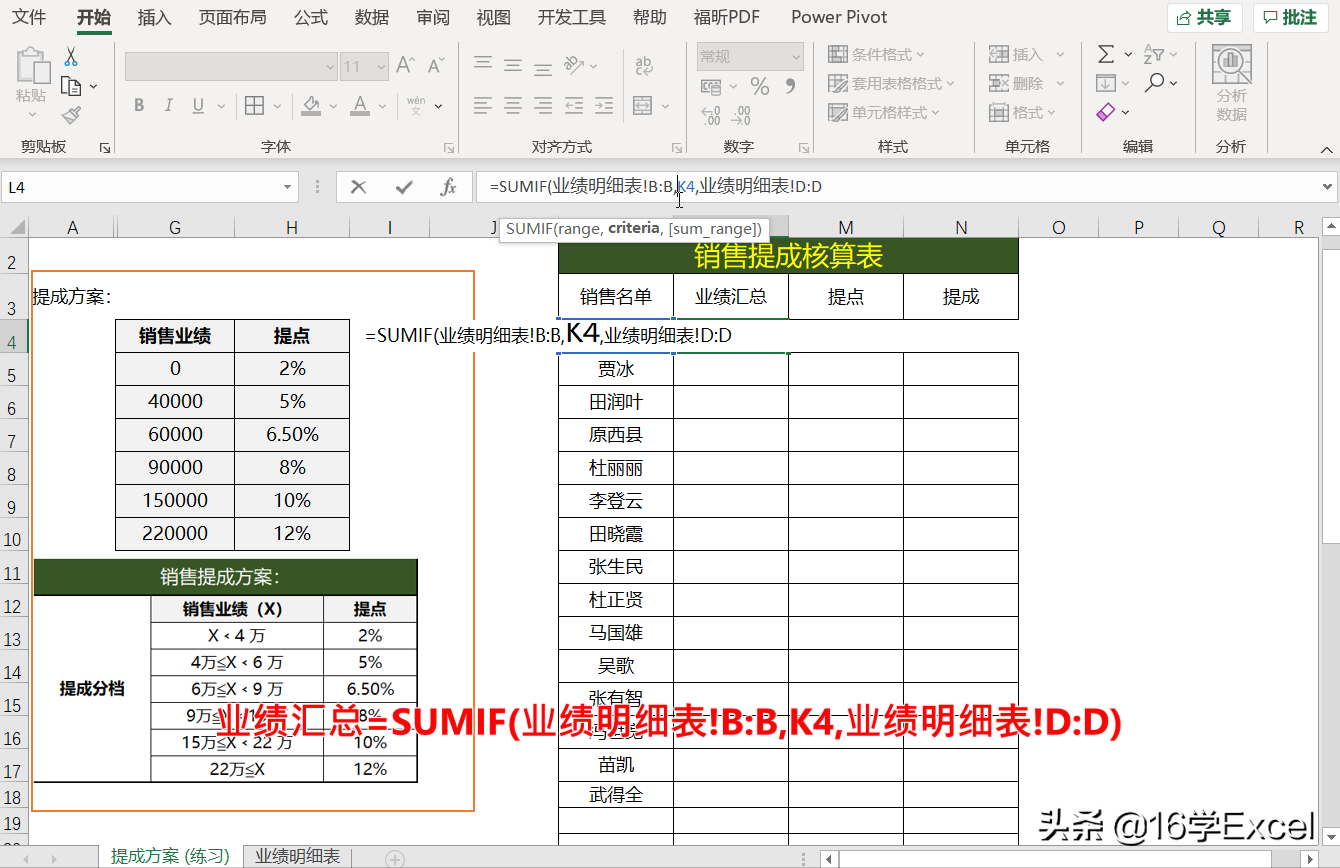 3.在引用提成方案底表时,必须使用绝对引用(按F4可自由切换)
