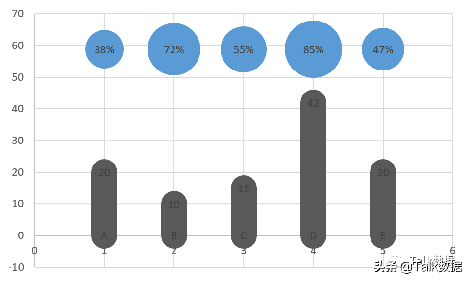 一张气泡柱状组合图看着不仅美观而且实用。但是需要说明的是,Excel组合图中并不包含此类图表,需要额外的数据操作。基本原理是气泡图加误差线。