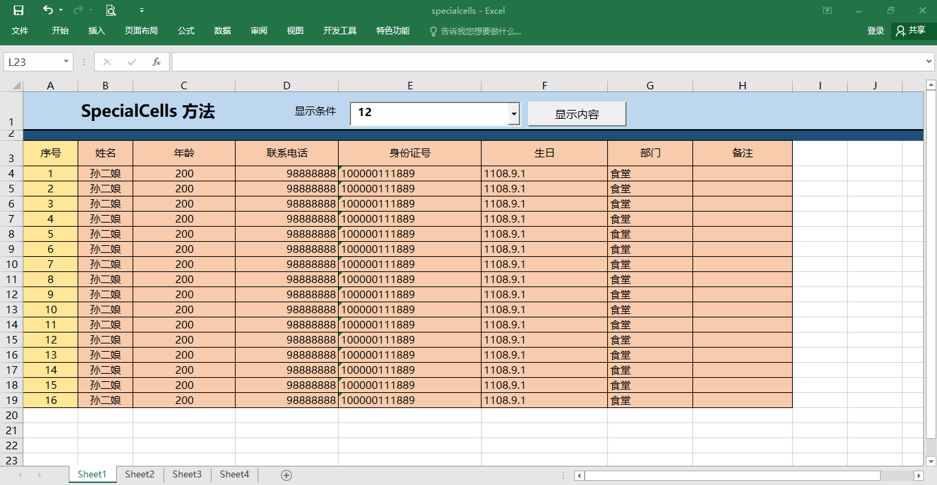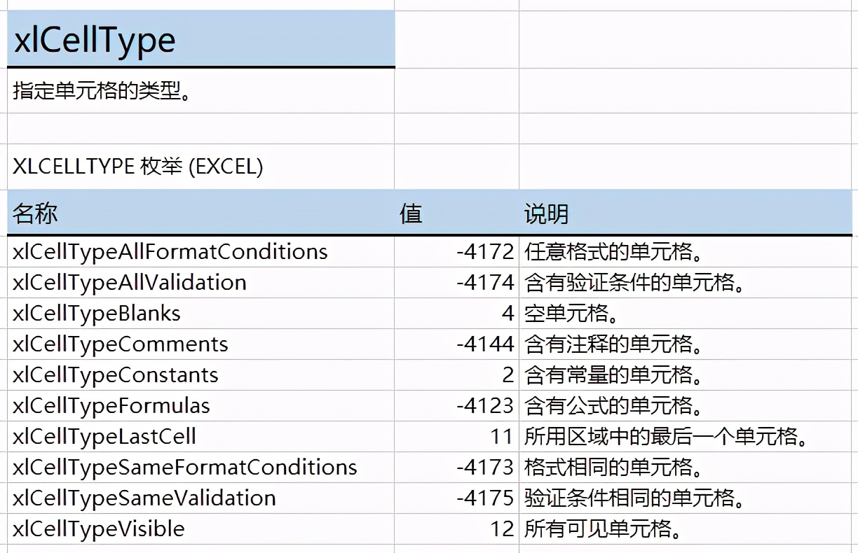 想要完成上述功能,用到Range对象的SpecialCells方法。