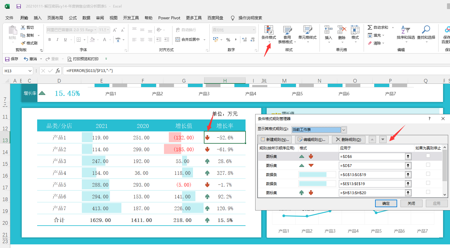 メ数据列单元格设置条件格式,自动设置图标集,数据条,自动数据显示。メ