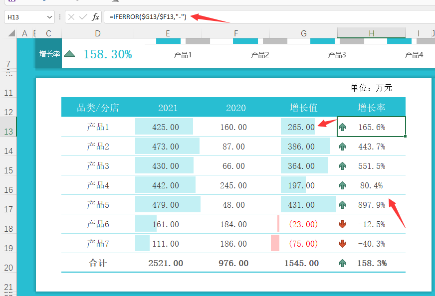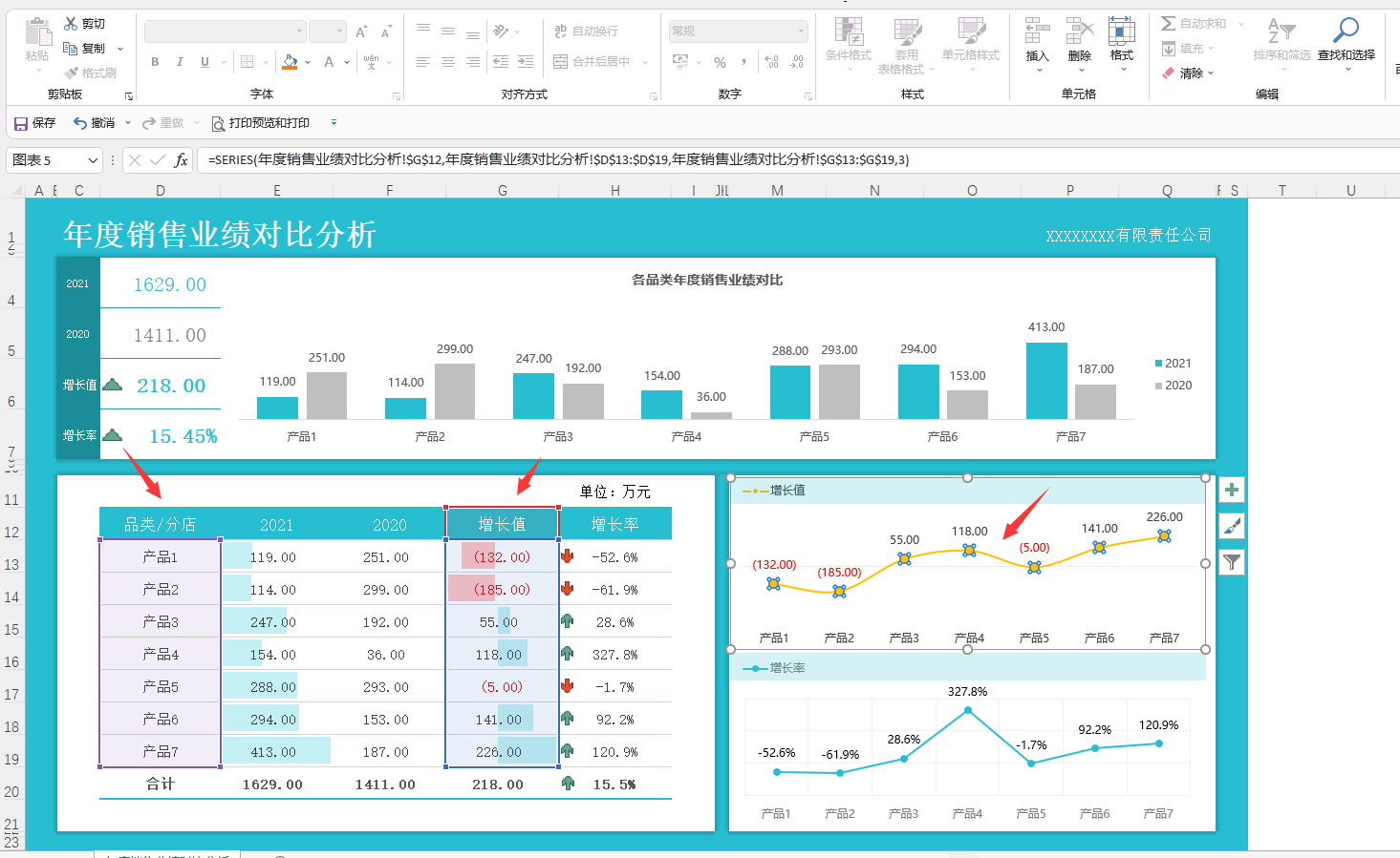 メ大家请看范例图片,Excel年度销售业绩分析图表,动态图形图表,数据条进度展示。メ