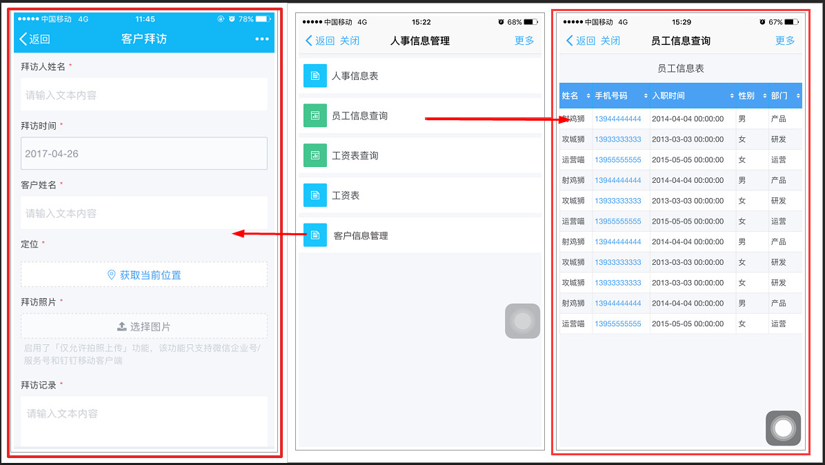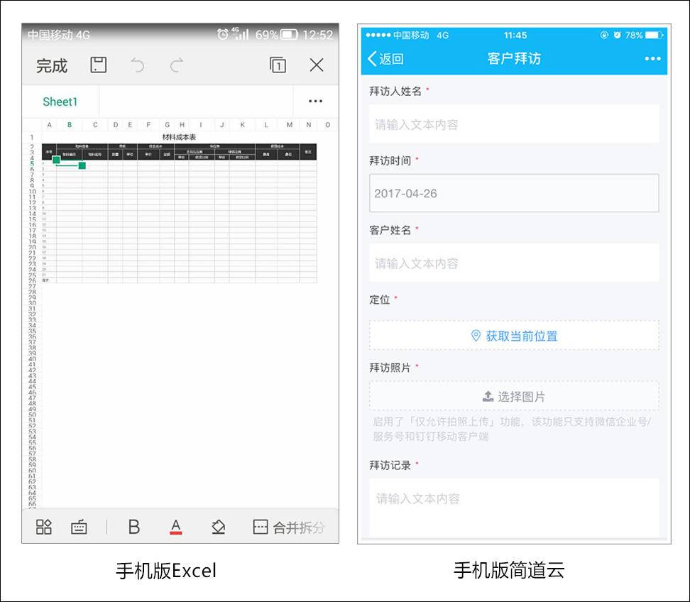 相比较Excel,简道云比较方便的点就在于:你可以在电脑上搭建好表单报表,绑定到钉钉/微信上就能使用,数据的录入查询数据都比较方便。