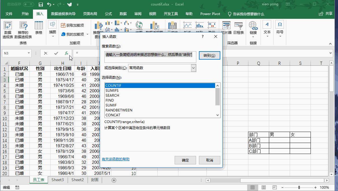 大家在实际的日常工作中,统计数量应该也是经常会遇到的吧,比如:统计公司的总人数,统计公司有多少个男员工、多少个女员工,统计有多少个结婚的员工等等等等。。。。