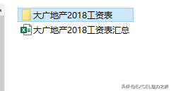第一步、在“大广地产2018工资表”文件夹外建立一个单独的汇总表,比如叫“大广地产2018工资表汇总”,如图所示,截图三:
