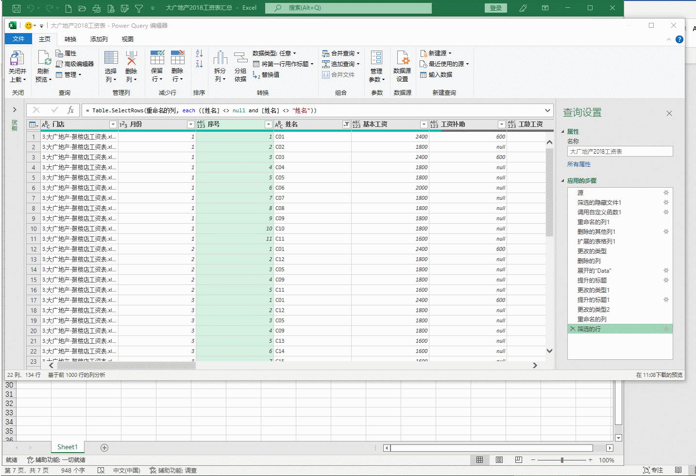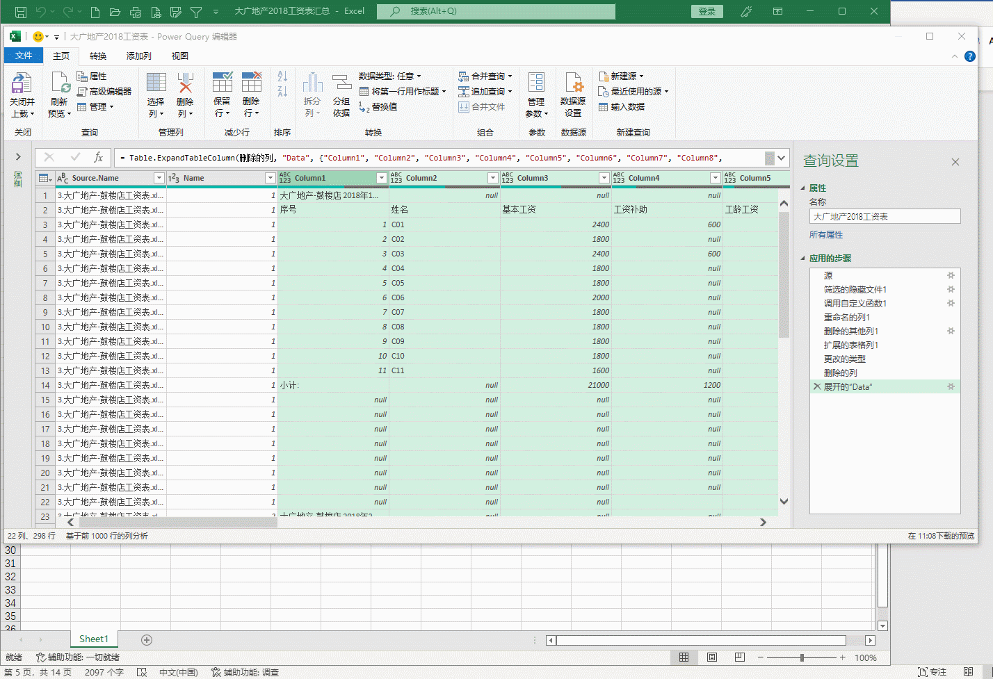 需求就是,利用PQ汇总工资表。