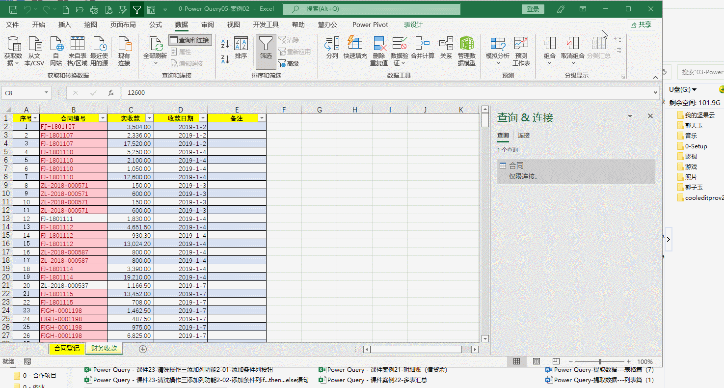 第一步、将“合同登记”表导入PQ