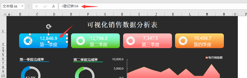 メ看板内数值区域,直接单与昂特引用数据源,同步数据结果,无需手动录入。メ