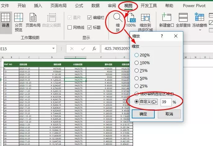 第1步:把Excel表格的显示比例调整到39%
