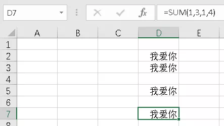 不管在excel表中输入什么内容,都显示为“我爱你”