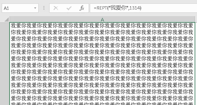 公式REPT("我爱你",1314)就是将"我爱你"重复1314次。