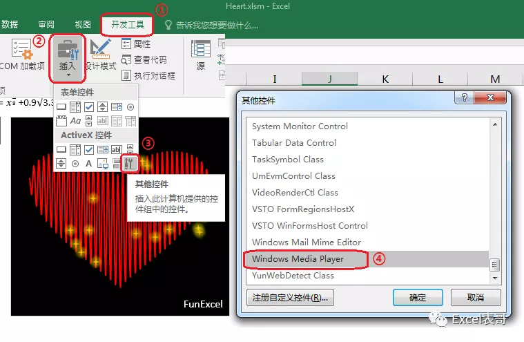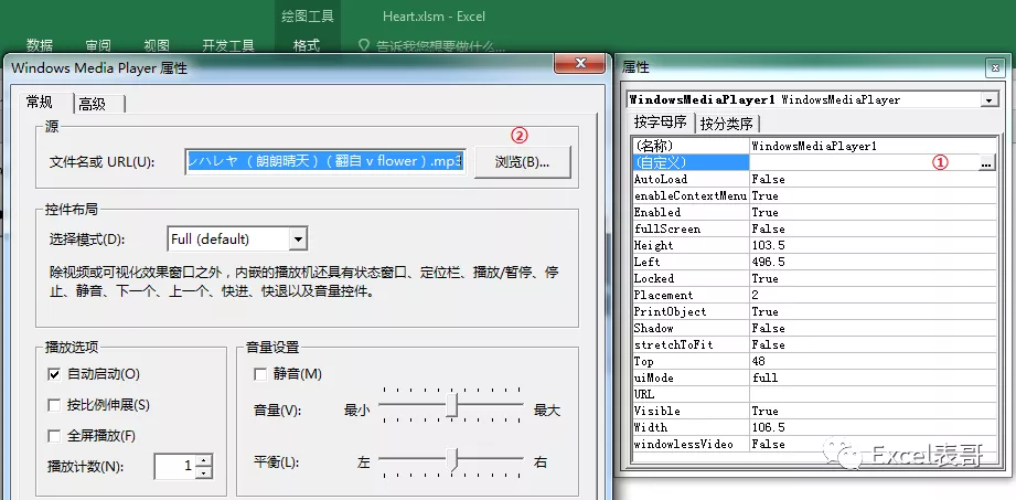 设置完成后可以将这个播放器放置在心形图底下,之后在VBE环境中添加如下代码: