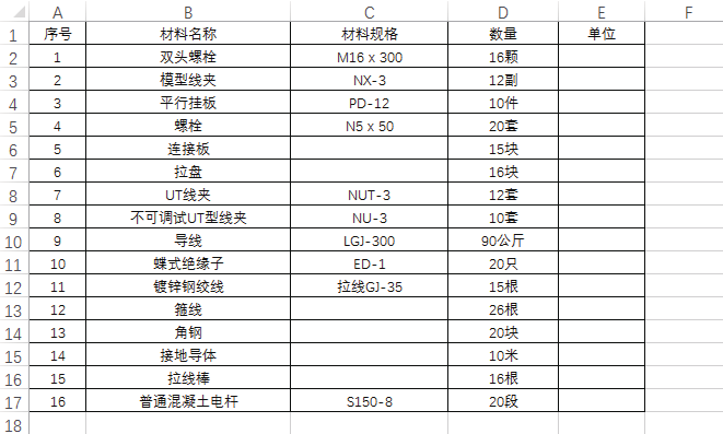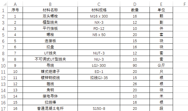 如下图所示,材料汇总表中"数量"列中含有单位,现要将单位分列到一列单独的E列中。