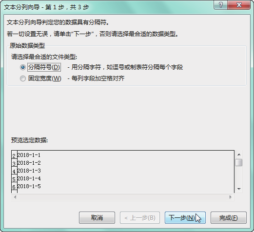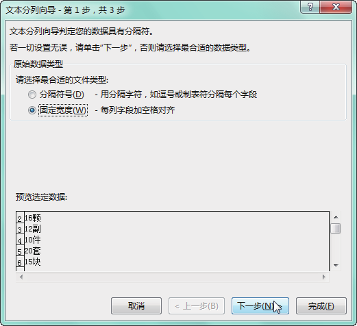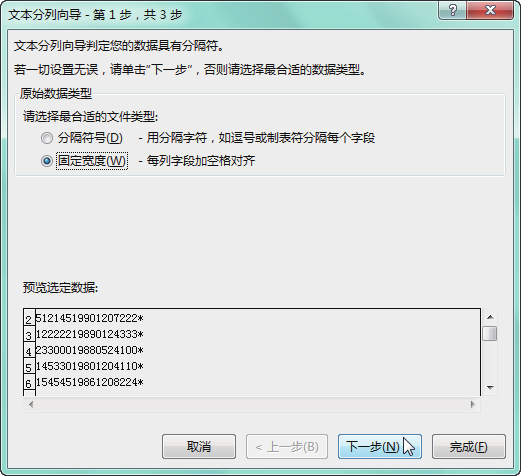 2.按固定宽度进行分列