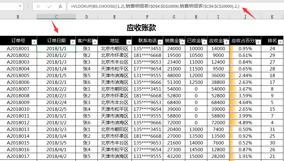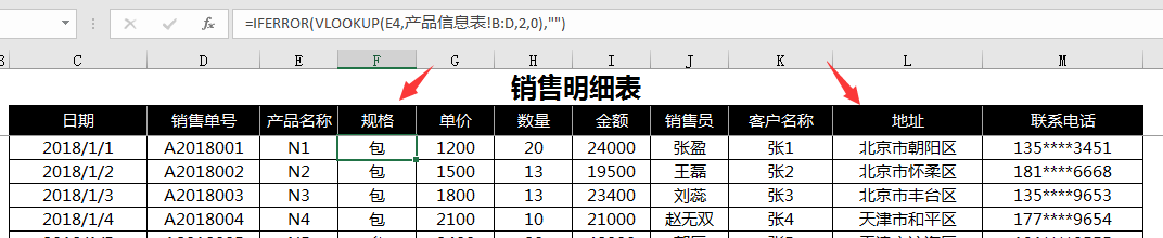 销售明细表为日常记录表,逐项填写其中规格、单价、地址、联系电话等,函数自动生成。