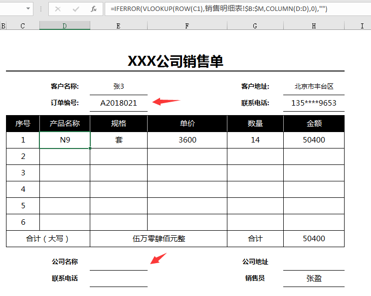 销售单首次使用填写公司名称地址和电话,以后再次使用只需填写销售单号其他内容自动生成。