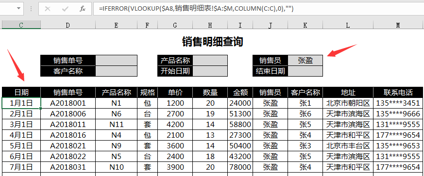 销售明细查询多条件查询,不输入表示不作条件要求,函数自动显示。