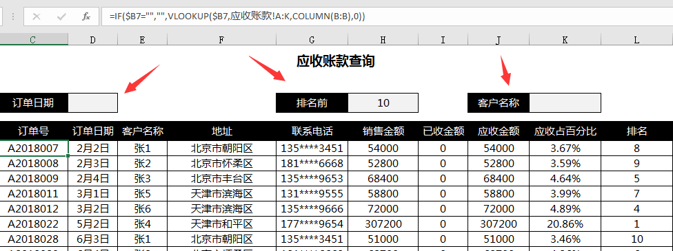 应收账款的查询条件多维组合查询需要查询的信息,既可以查询一个公司不同订单的查询情况。