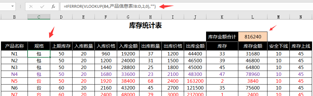 库存表只需输入库存名称,其他内容自动生成,差异显示轻松管控。